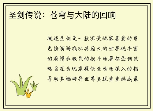 《圣剑》是一款深受玩家喜爱的角色扮演游戏,以其庞大的世界观、丰富的剧情和激烈的战斗而著称。圣剑攻略旨在为玩家提供全面而深入的指导,助其畅游异世界,克服重重挑战,最终成为救世英雄。